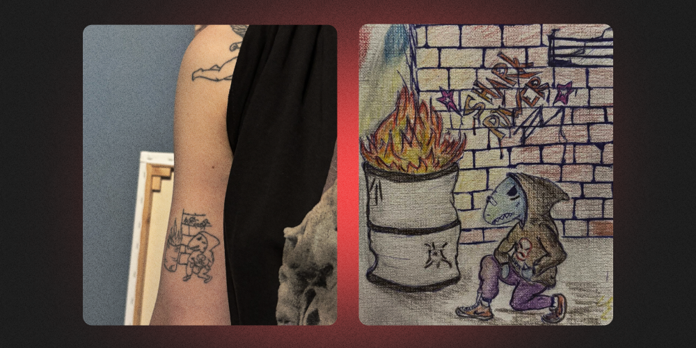 Фото: Данил Чертыков регулярно рисует в письмах акул. Одну из них Алена набила на руке